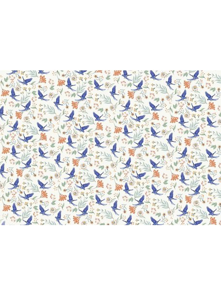 Mural is wallpaper with a particular design that we sell in standard measurements, for example the width could be. 100cm, 194.8cm, 292.2cm, 389.6cm with a standard height of 280cm. Murals are always fabricated on high quality non-woven wallpaper with a protective varnish and ecological ink which guarantees a good air quality in the room. This design with parrots and tropical flowers creates a colorful room.